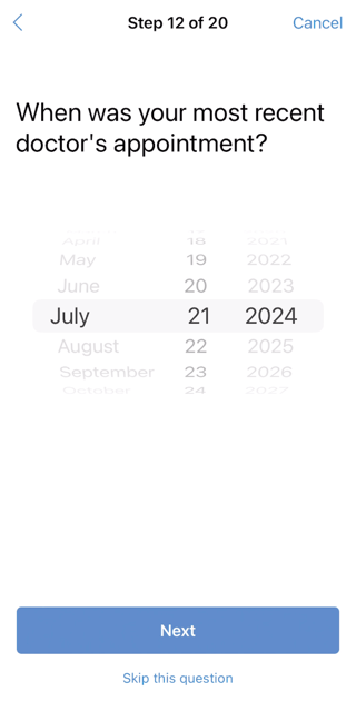 The date answer format displays a date picker to the participant for them to select a specific date (and, optionally, time of day).