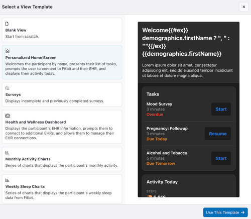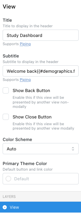 Advanced logic allows you to make your view more dynamic, responding to the participant or other data. For example, you might want to display a participant field, use an expression in your view, or show step goals on a graph.
