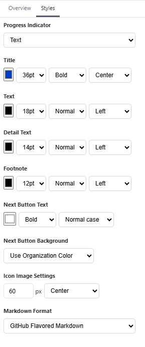 If you are using content items within instruction steps, you can control the look and feel settings on the Style tab as well.