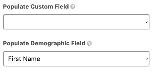 In the step settings, you can choose to save the information into one of the standard demographics fields or a custom field. For more information, see Setting Demographic & Custom Fields From Survey Answers.