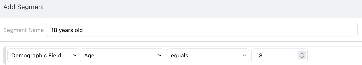 Using either an On Meeting Criteria or On Entering Segment schedule type, you’ll want to send the participant a consent when they turn 18 years old. You can do this by using the Age demographic field which is based upon their date of birth. Either use this criteria for a schedule or create a segment with it to trigger delivery of the consent survey.