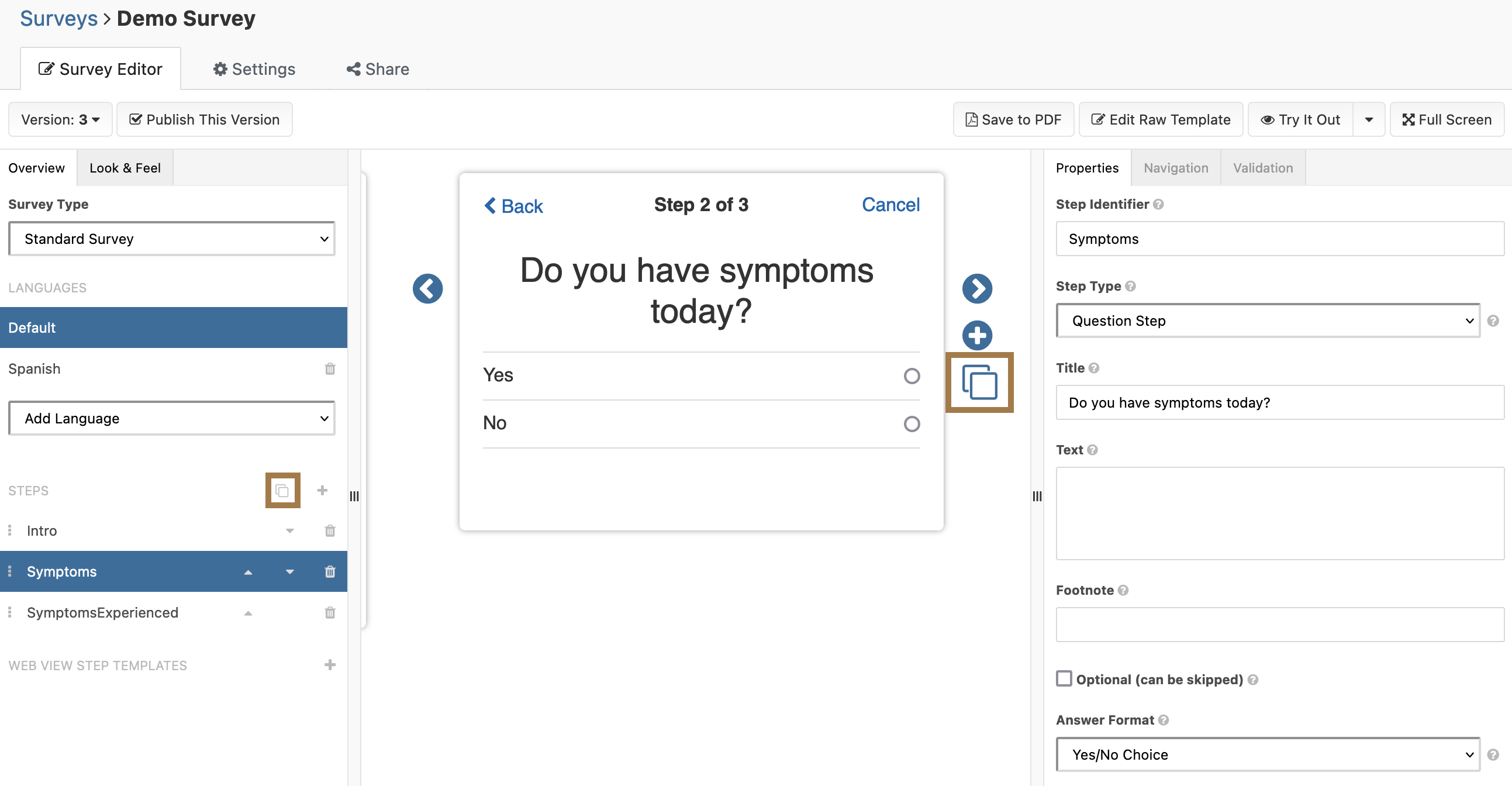 Copying Steps and Form Items Sometimes, steps and form items follow a certain pattern. Instead of starting from scratch from every step, you can select a step or form item and copy it: