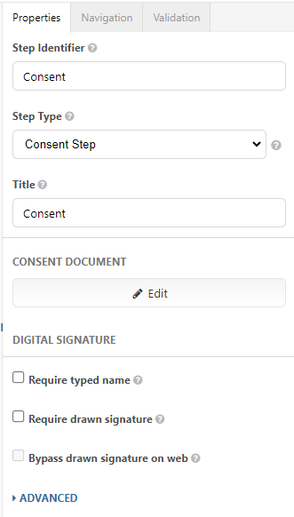 - Step Identifier: Already populated as "Consent" and is used as an internal way to reference this step. You may revise the name.
