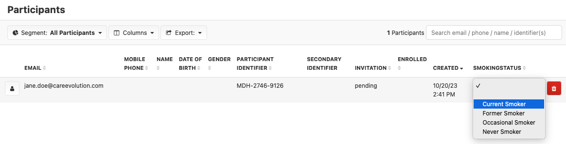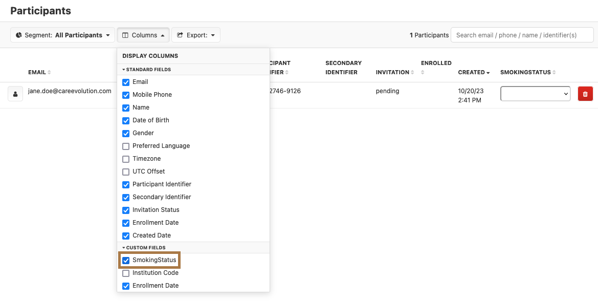 From the All Participants view or any of your segments, you can adjust the view to include your custom picklist field.