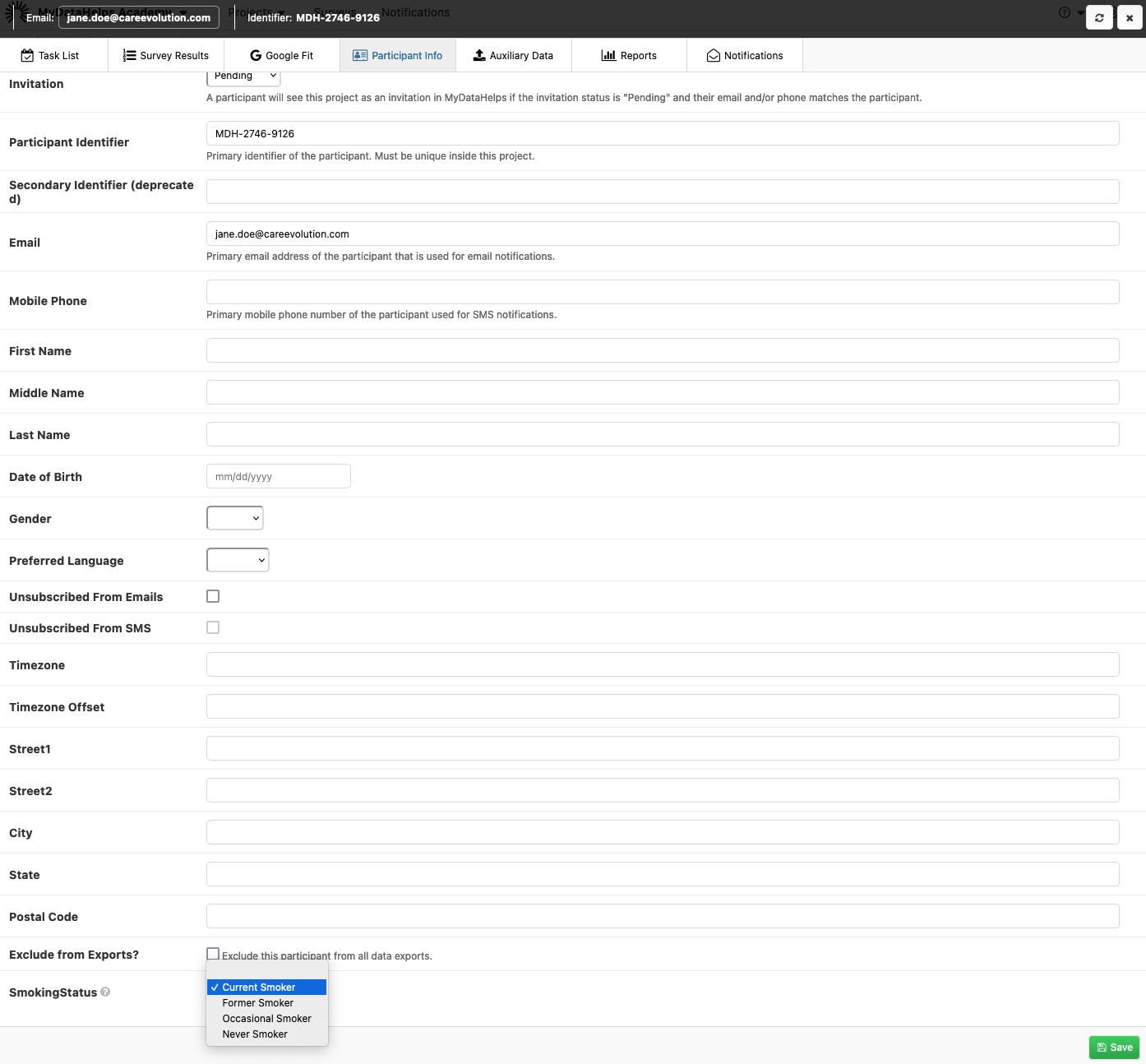This can be especially handy for participant trackers, where you might be updating a participant's status (e.g., a BiospecimenKitStatus field with the value "Returned").