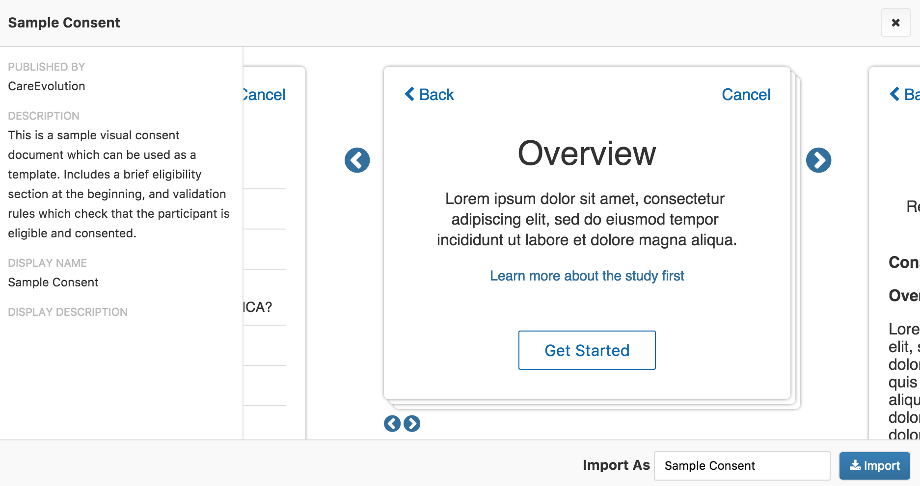 Enter the name you’d like to give the imported survey and click “Import” to import a copy of the survey into your survey list. Note that that does not modify the initial survey and simply copies the survey content into a new survey within your workspace. You are free to modify a survey after it has been imported into your survey list.