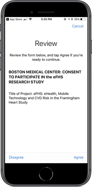 The Consent Review step lets the user review the entire consent document on a single screen and then acknowledge it. It can also be used to capture electronic signatures.