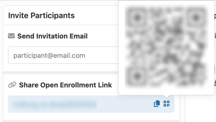 To access the QR code from the project homepage, click the code icon under "Share Open Enrollment Link".