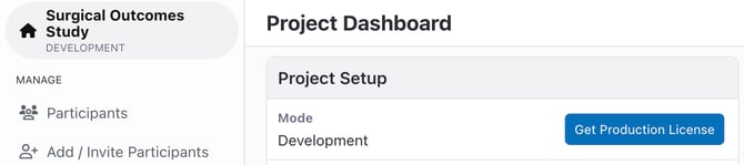 - On the project's home dashboard, click "Get Production License".