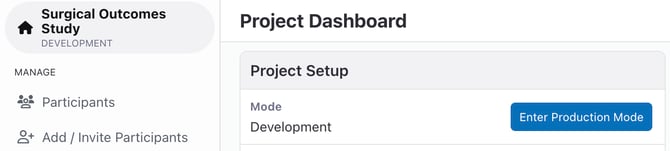 - Once a production license is granted, you can click "Enter Production Mode" on your project's home dashboard.