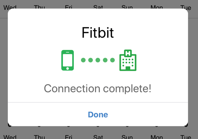 The participant will be prompted to log in with their Fitbit account. When the accounts are synced, the app will indicate that the connection is complete.